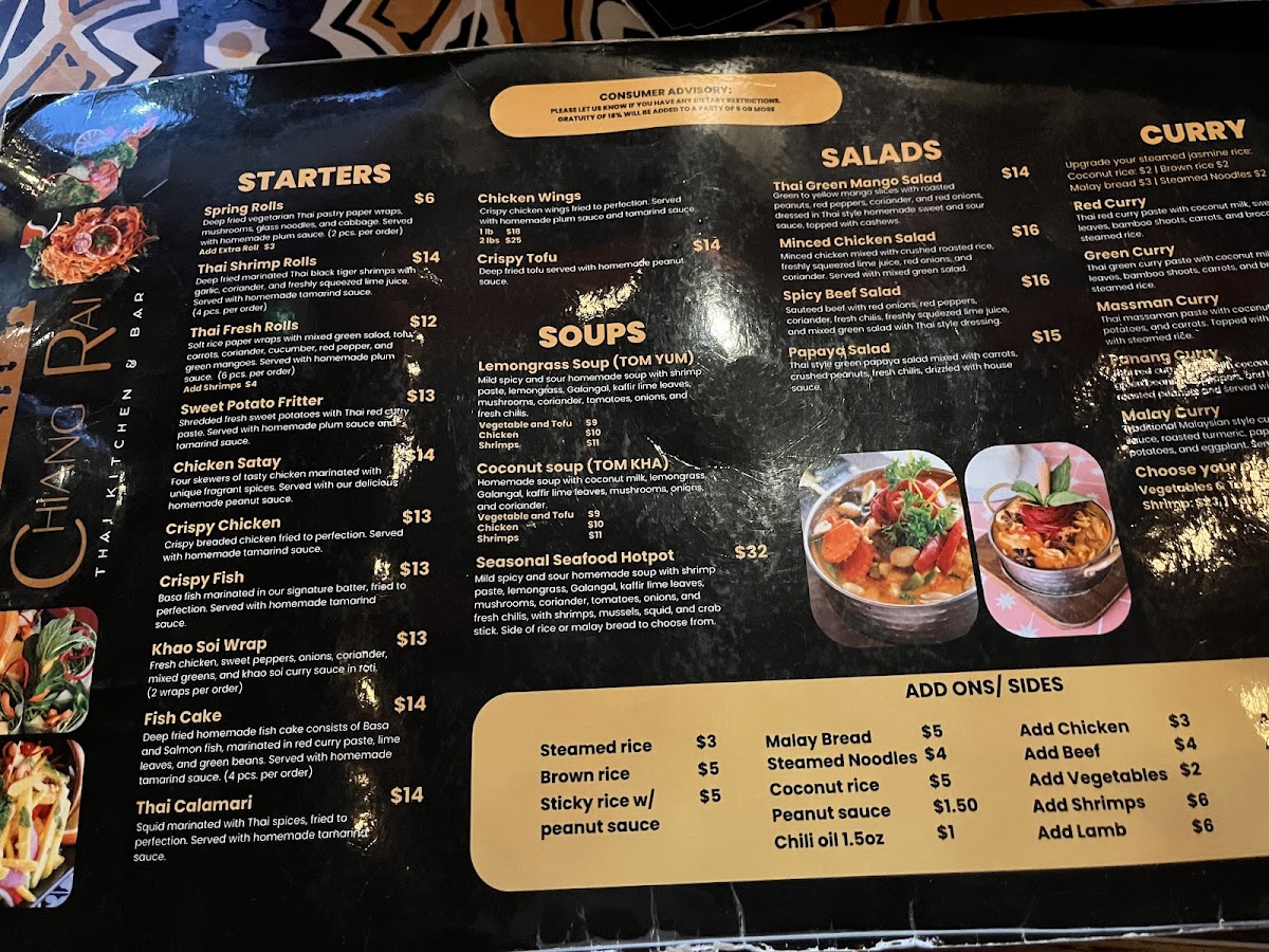 Welcome to Chiang Rai Thai Kitchen and Bar, a hidden gem nestled in Markham, ON, that serves authentic Thai cuisine with a warm, inviting atmosphere. Upon entering, the rich aromas tantalize your senses, promising a remarkable dining experience. The menu is a vibrant fusion of flavors and textures, featuring notable dishes like the Famous Pad Thai with lobster, alongside the much-appreciated mango salad known for its beautiful plating.